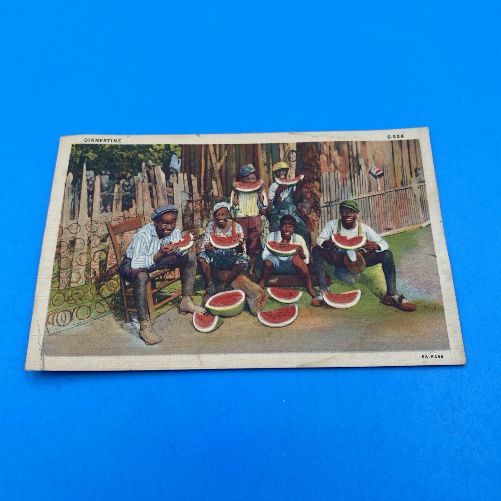 Historical/Content Note: Some people consider that the front image uses racist watermelon stereotyping common in U.S. mass-market postcards of the era. We present it for documentation and study of American visual culture and printing history.
