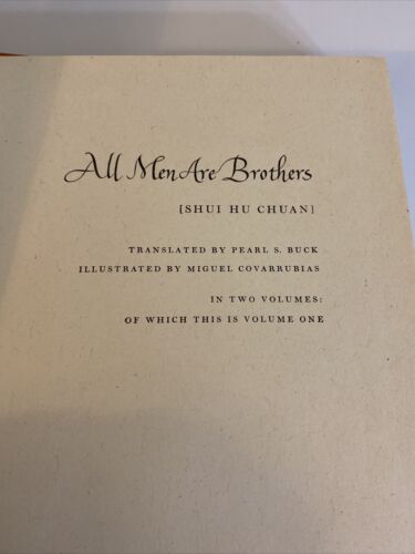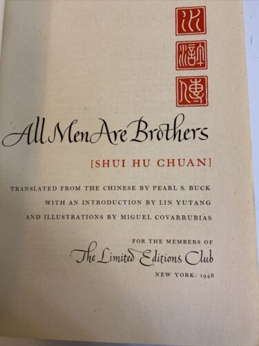 This is a rare and highly sought-after limited edition copy of All Men Are Brothers by Chuan, illustrated by Covarrubias. The book showcases fine binding and contains English literature that belongs to the antiquarian and collectible category. It is an original publication by the Limited Editions Club and has special attributes that make it a valuable addition to any book collection. Whether you’re a literature enthusiast or a collector, this book is a must-have for you.