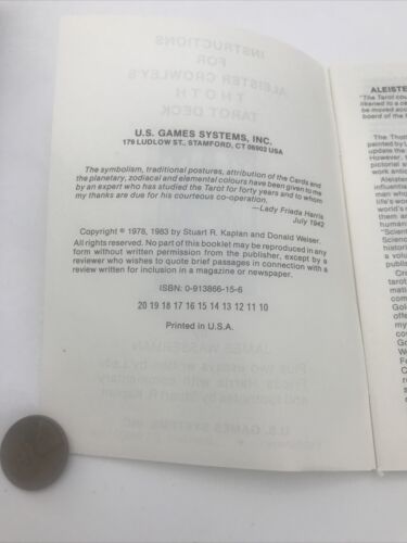 1978 ALEISTER CROWLEY THOTH TAROT CARD DECK AC78 (U.S. Games) BELGIUM. The box has wear. The cards are in great condition. Please look at the photos.