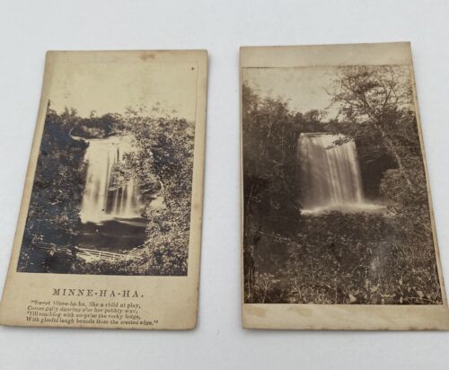 2 Minnehaha Falls CDVs from 1860s Old Photograph, Minneapolis Minnesota