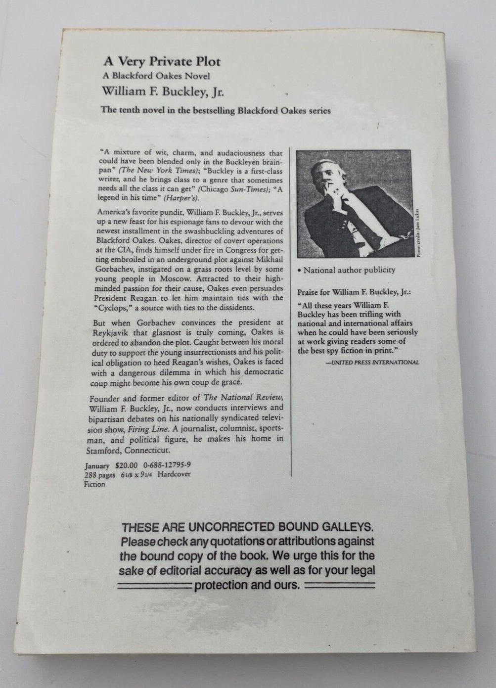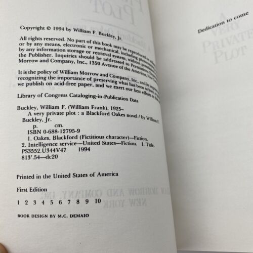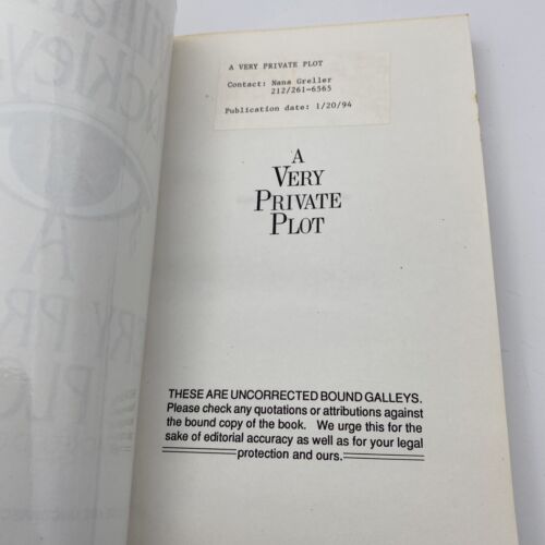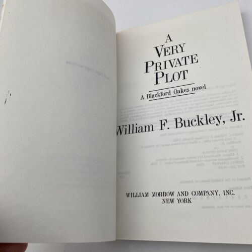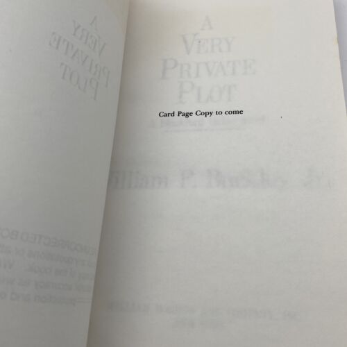 A Very Private Plot: A Blackford Oakes Novel is a vintage fiction novel by William F. Buckley Jr. It was published in 1994 by HarperCollins and is an uncorrected proof of the first edition. The book is part of a series and is a thriller/espionage genre. The intended audience is young adults and adults. The book is written in English and is set in the 1990s.