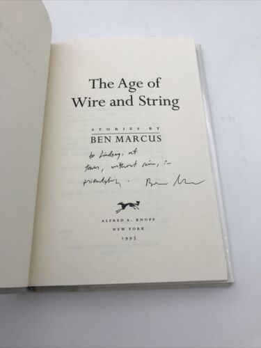Age of Wire and String : Stories Hardcover Ben Marcus Inscribed.