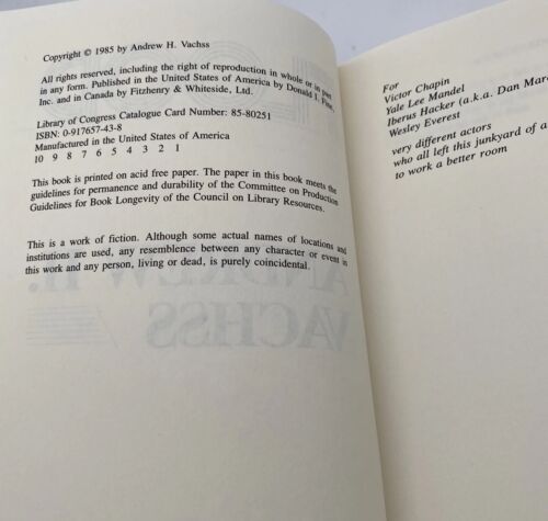 This signed 1st edition of Andrew Vachss’ FLOOD is a rare gem for collectors. The hardcover book comes with a dust jacket and is published by Donald I. Fine in 1985. It is an original print and features the author’s signature. The book is in excellent shape and would make a great addition to any collection. Get your hands on this rare piece of literary history.