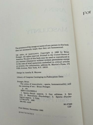 Arena of Masculinity Sports, Homosexuality, & the Meaning of Sex Pronger 1st/1st. Condition is “Very Good”. Shipped with USPS Media Mail.