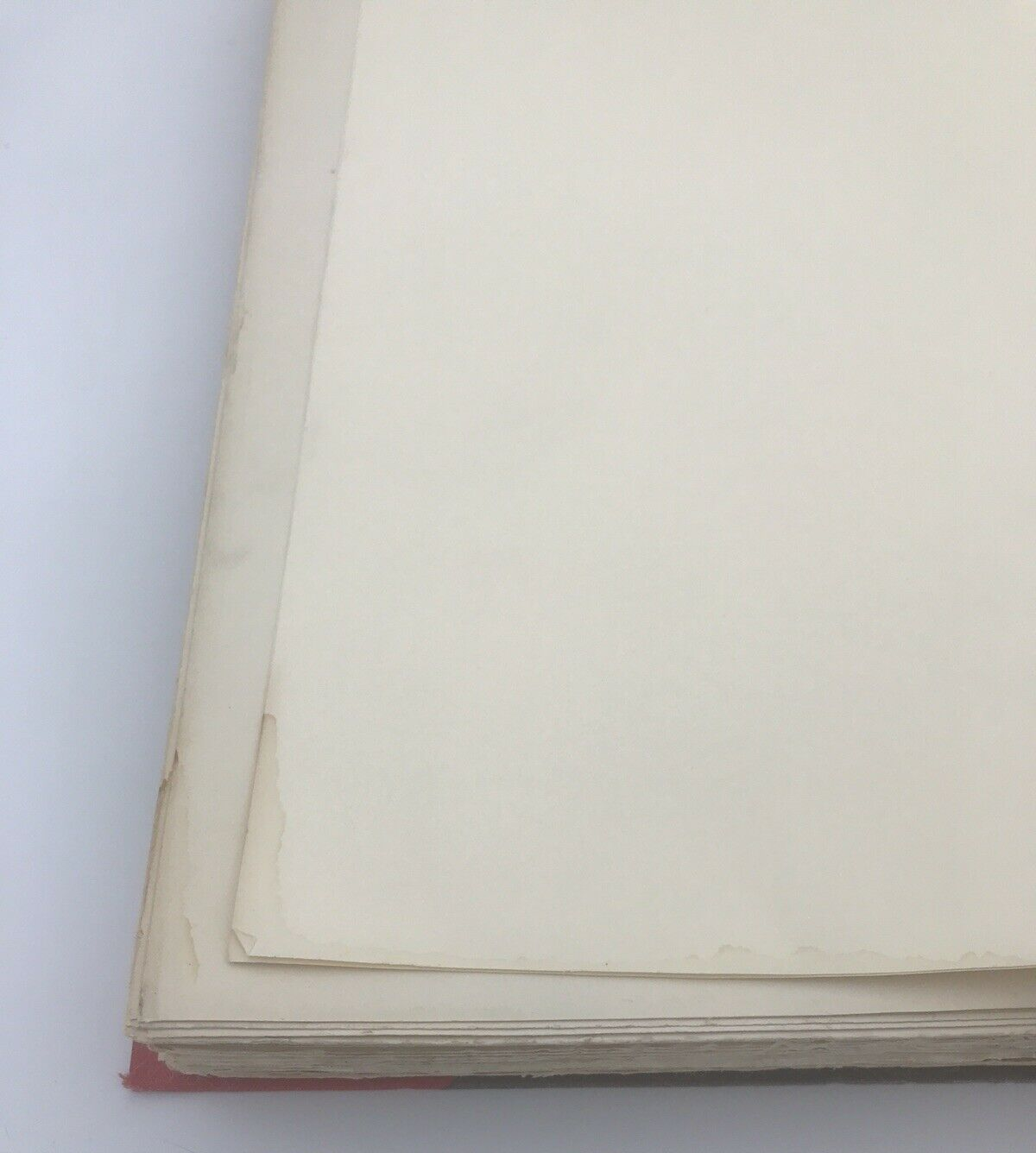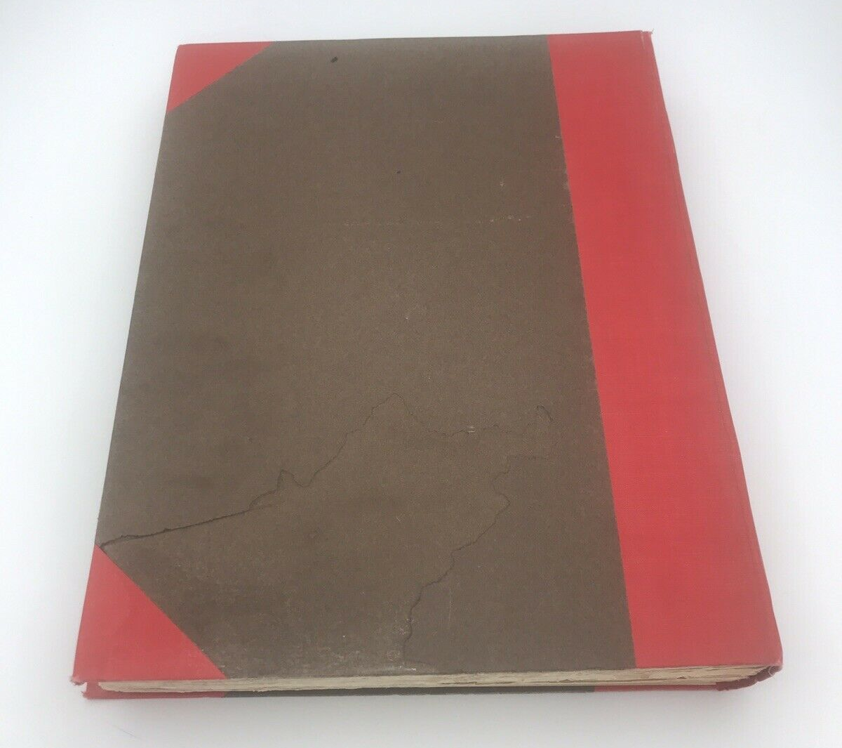 The book is approximately 14″x11″x2″. Some of the pages are uncut. There is some shelf wear and minor foxing. There is a water stain on the back board. There are also a couple of small stains on the spine. please see the photos.