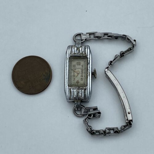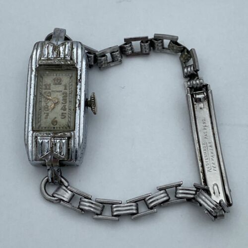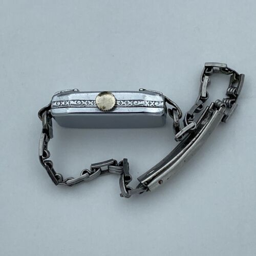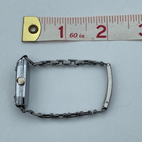 This beautiful Art Deco ladies wristwatch by Gotham is a stunning piece of jewelry that doubles as a timepiece. The chrome plated case finish and Kestenmade Permawear bracelet give it a stylish and timeless appeal. Perfect for women who want to make a statement with their accessories, this wristwatch is sure to complement any outfit. The brand name is synonymous with quality and durability, making this a reliable and long-lasting investment. Ideal for collectors or those who appreciate vintage-inspired pieces, this Gotham watch is a must-have addition to any jewelry or watch collection.