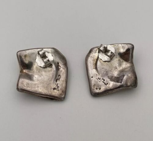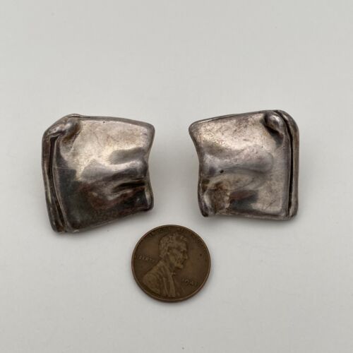Bat Ami Sterling Silver Modernist Chunky Twisted Abstract Puffy Earrings 12.5g