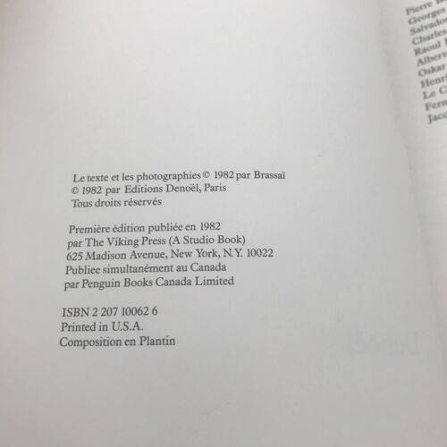 Brassai: Les Artistes de Ma Vie. The book is dated 1982.
