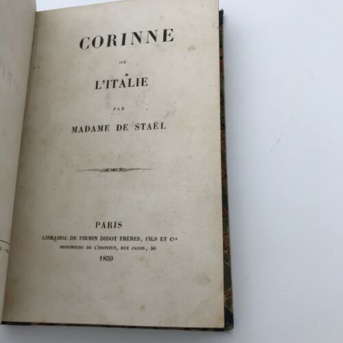 Corinne OU L’Itale by Madame De Stael. Publisher Librairie De Firmin Didot Frères. Published in 1859.