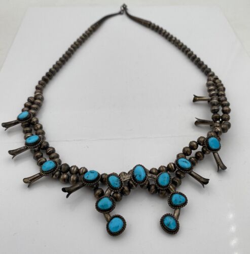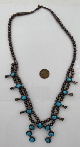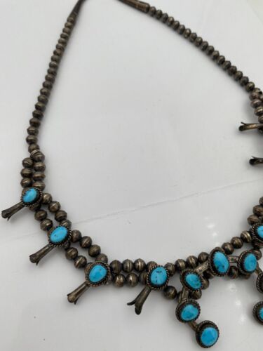 Detailed Vintage Sterling Silver Squash Blossom Necklace