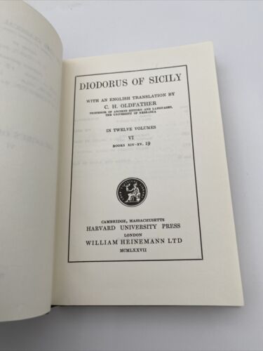 This hardcover book, titled “Diodorus Siculus: Library of History, Volume VI, Books 14-15. 19” is a literary and historical masterpiece. Published by Harvard University Press.