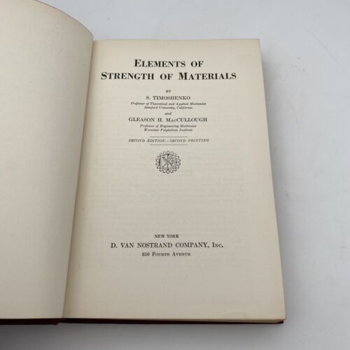 Elements of Strength of Materials by Timoshenko and McCullough 1940 (Second Edition).
