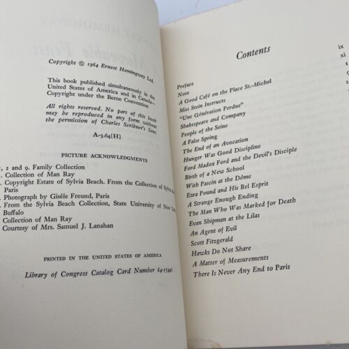 Ernest Hemingway “A Moveable Feast” 1st Edition (1964) Scribner’s Hardcover RARE