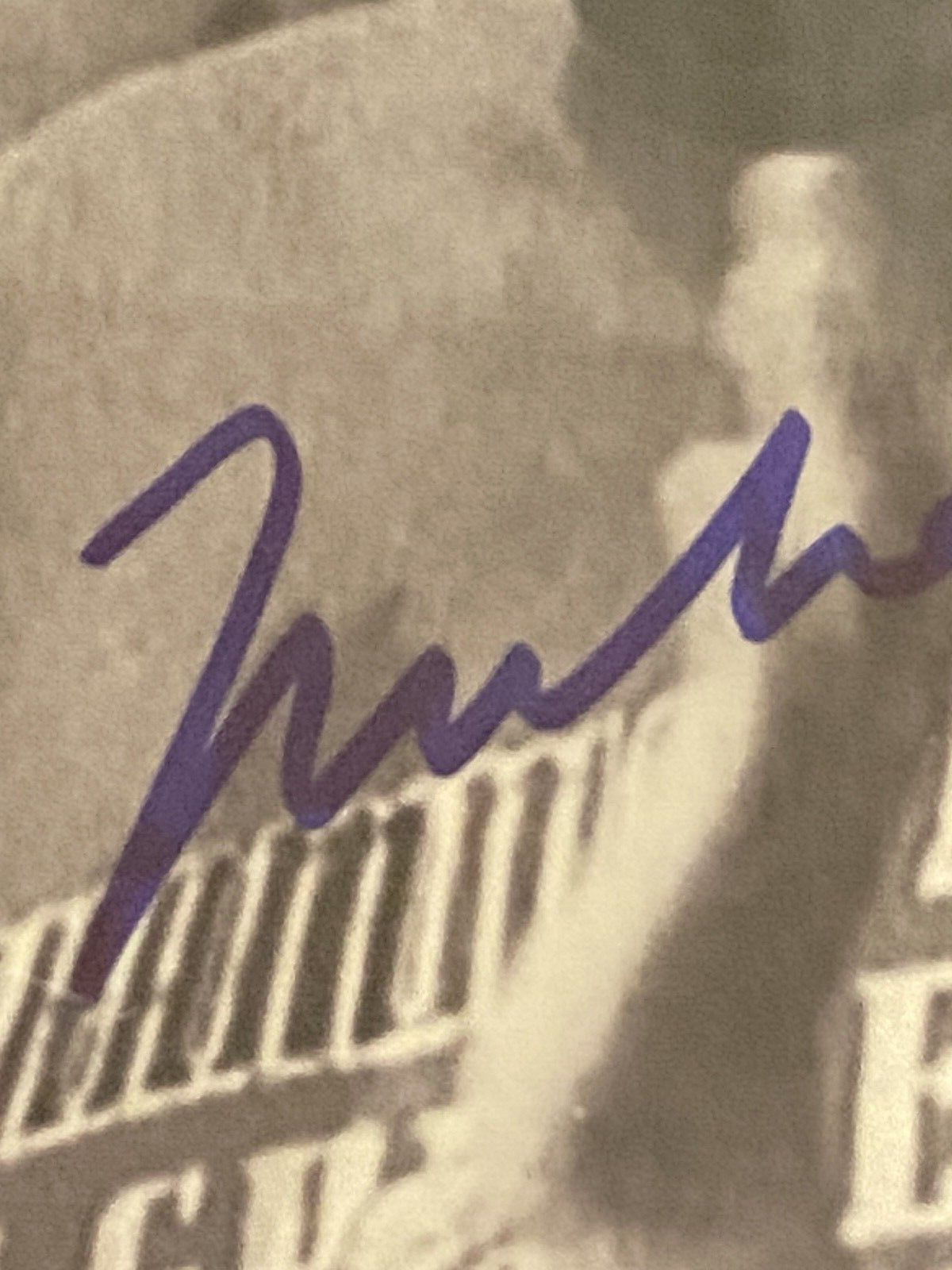 Signed by Ali in a vivid blue sharpie on March 10, 1994, while promoting the unique Aquinas Mission high school boxing bouts in Rochester, NY, this autograph adds a personal touch from one of the most celebrated athletes globally. The photo is meticulously framed approximately measuring 27.5″ x 21″, using all acid-free materials and protected under conservation plexiglass to ensure its preservation and mint condition.
