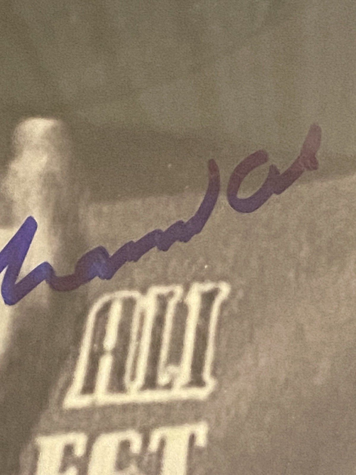 This autographed photo is not only a collector’s dream but also a snapshot of cultural history, representing a time when sports transcended boundaries to unite diverse worlds. With only a few of these framed pieces in existence, this is a rare opportunity to acquire a significant artifact from Muhammad Ali’s illustrious career and philanthropic endeavors.