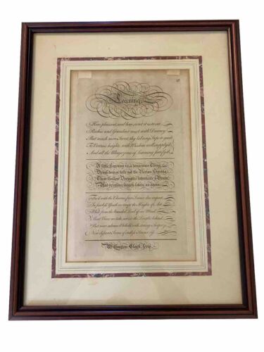 This is a rare collection of loose pages and articles from George Bickham’s The Universal Penman, a masterpiece of calligraphy and penmanship. The pages are printed on watermarked laid paper and feature stunning copperplate engravings by the author himself. The articles cover a wide range of topics related to calligraphy, making this an essential addition to any collector’s library. The collection was published by H. Overton in London, England between 1733 and 1741 and is in its original form. The illustrations and text are in English and the binding is not included. This is a fantastic opportunity to acquire a piece of history and add a rare and valuable item to your collection.