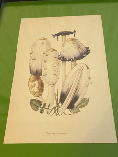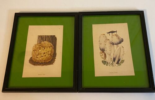 This set of vintage book plates features the beautiful botanical illustrations of artist Rose Ellenby. The prints showcase various types of fungi and come already framed, ready to be displayed as a unique addition to any art collection.