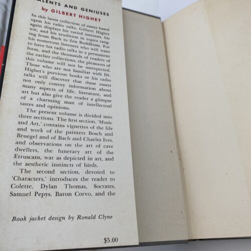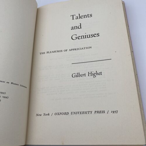 This is a hardcover first edition book titled “Talents & Geniuses” by various authors. It was published by Oxford University Press in 1957 in the United States. The book covers literary criticism with a focus on music. It contains special attributes and is an original print. The language used in the book is English and it was printed in North America. The subject of the book is literature and fiction. It is a superb addition to any collection of antique books.