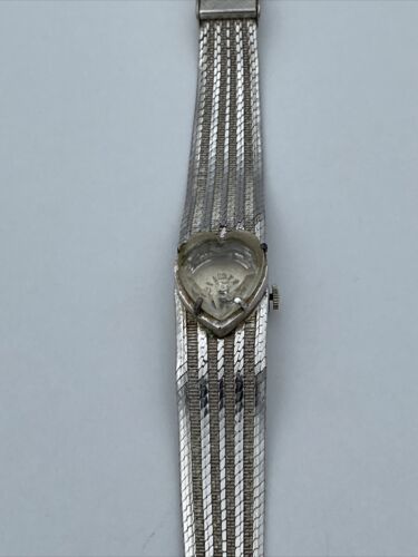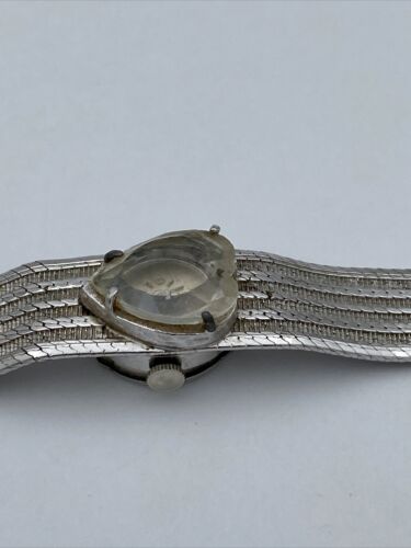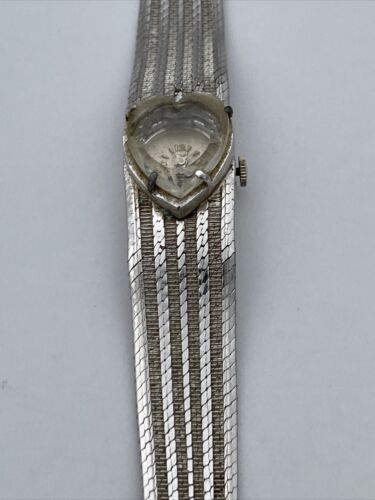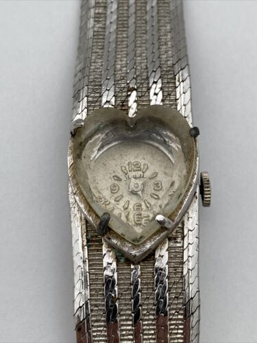 Add this beautiful vintage heart-shaped Sheffield wristwatch to your collection! The heart shaped crystal detailing adds the perfect touch of elegance to any outfit. This watch features Caliber 5011 B 1 and is perfect for any woman looking for a timeless accessory.