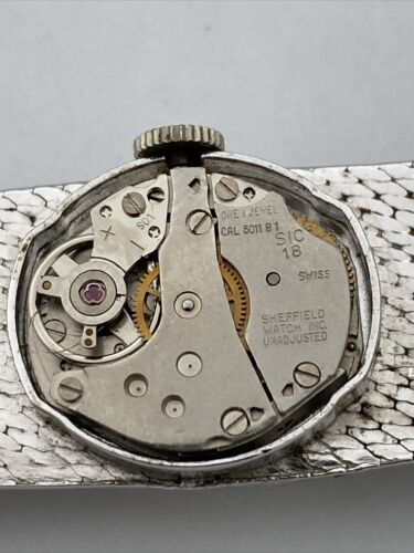 It is a manual wind watch with an original Sheffield movement caliber 5011 B 1, one jewel, unadjusted, Swiss made.