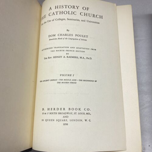 This two-volume set of “History of the Catholic Church” by Dom Charles Poulet is a rare find for anyone interested in the history of Catholicism. The books were published in 1950 and 1952, and are hardcover editions that have been signed by the previous owner. The books are written in English and cover a range of topics including the history of the Catholic Church, Catholicism, and its subject matter. The set is in good condition and has been well looked after. This is a great addition to any collection of historical or religious works. The books were printed in the United States and are ideal for scholars, historians, and anyone interested in learning more about these subjects.
