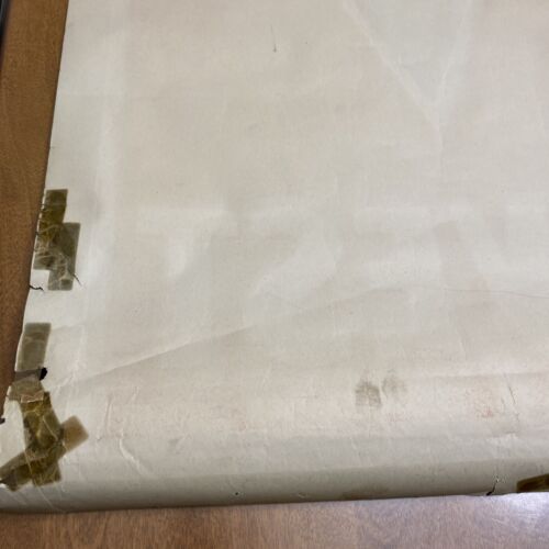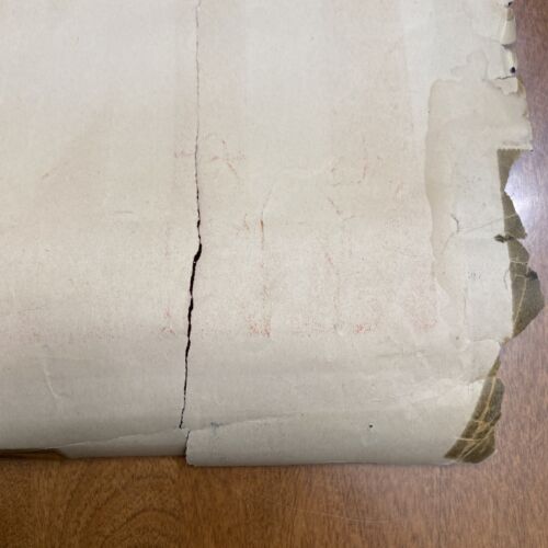 There is corner damage and some tears. The bottom left tear is about 6 inches in length. There is a piece broken off on the top right. Please see the photos.