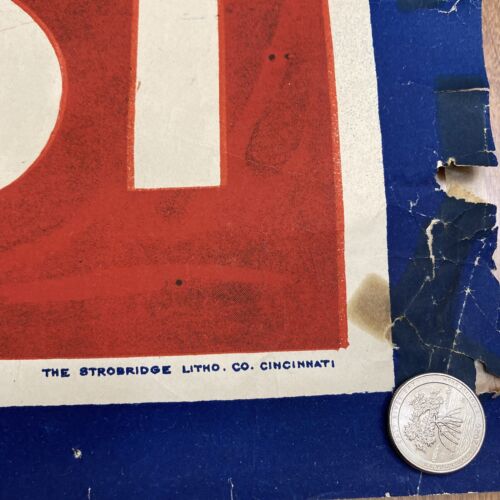 The rare lithograph is still vibrant in color. It is a simple but iconic design.
