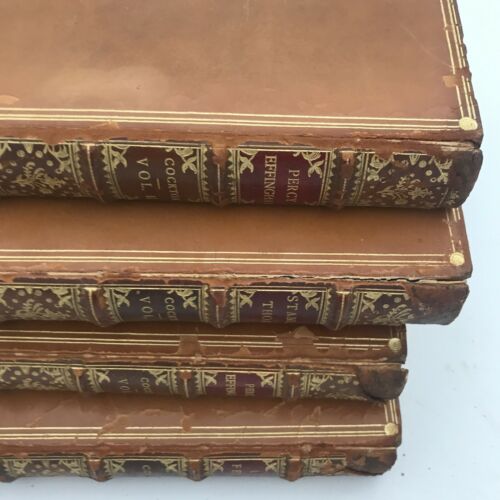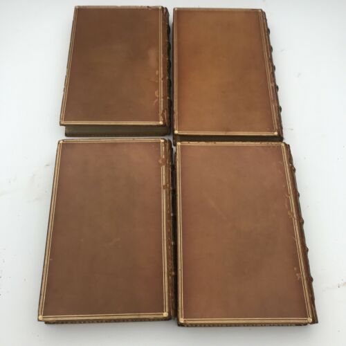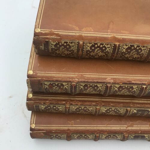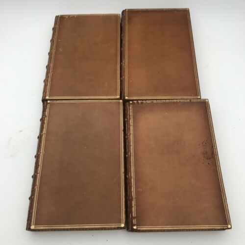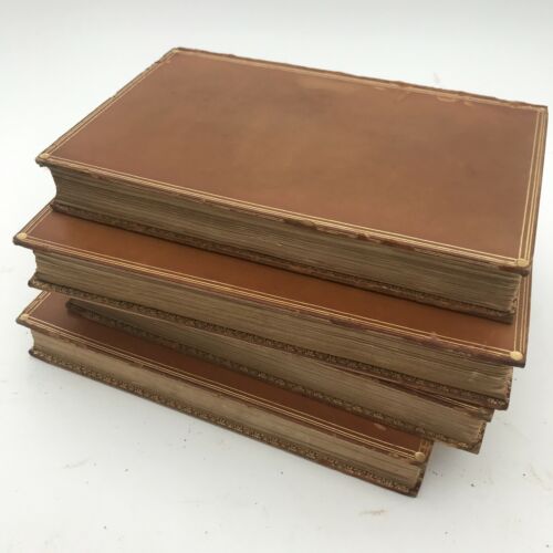 These books have condition issues. There is cracking of the leather (Red rot) on these books. The boards are attached but there is a good amount of wear to the joints. The spine has damage due to the red rot. Please see the photos.