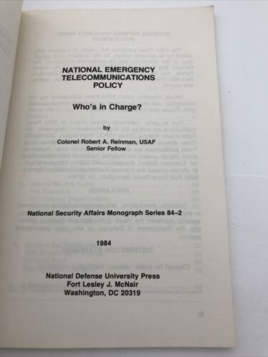 National Emergency Telecommunications Policy Who Is In Charge? 1984 Reinman. Condition is “Good”. Shipped with USPS Media mail.