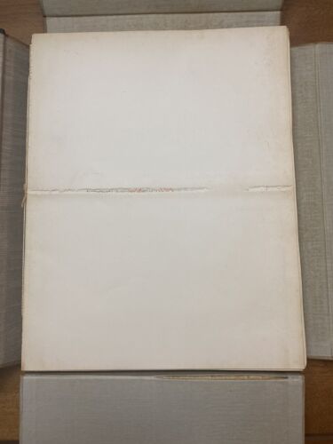There is some age tanning discoloration due to aging. There is also some wormhole damage. The last few plates have that damage in the bottom right area. Please see the photos and let us know if you have any questions.