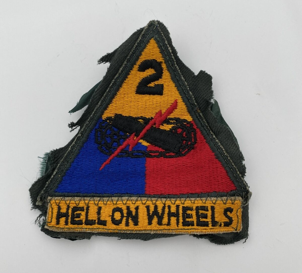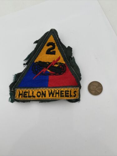 This is an original 2nd Armored Division patch with an attached “Hell On Wheels” tab. The patch dates back to World War II (1939-45) and was made in the United States. It falls under the categories of Patches, United States, Original Period Items, WW II (1939-45), Militaria, and Collectibles. The patch is a unique piece of history and a must-have for any collector or enthusiast of militaria.