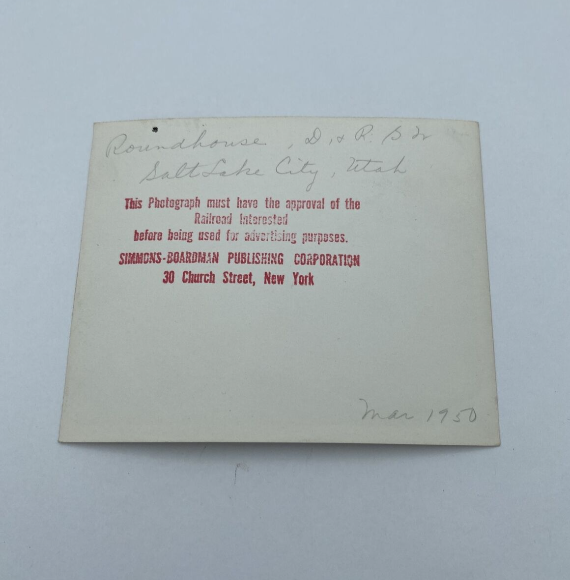 This is a rare photograph of a Roundhouse D&R train taken in Salt Lake City, Utah in 1950. The image is in black and white and depicts the train in motion. The photograph is an original piece and is perfect for collectors of transportation-themed items, particularly those interested in trains. The photograph was produced in the 1950s and showcases the train during that time period. The image is clear and detailed, making it an excellent addition to any collection. This item is categorized under photographs, photographic images, and collectibles and is an original print. The photograph captures a unique moment in transportation history and is a must-have for any collector or enthusiast.