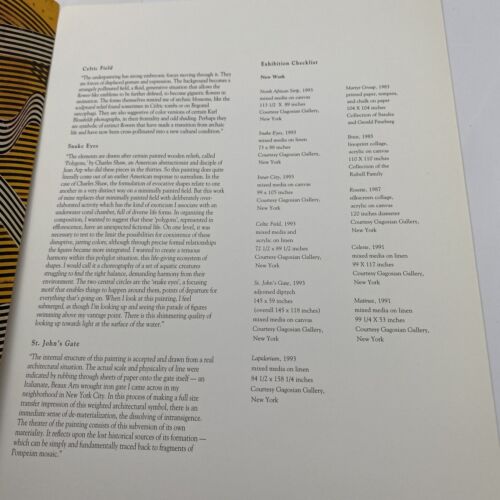 This catalog features the work of Philip Taaffe and showcases a few his new pieces from the year 1993. It provides insights into the art and exhibitions of the time. The catalog is a valuable addition to any art collector’s library and is a must-have for those interested in the works of Philip Taaffe.