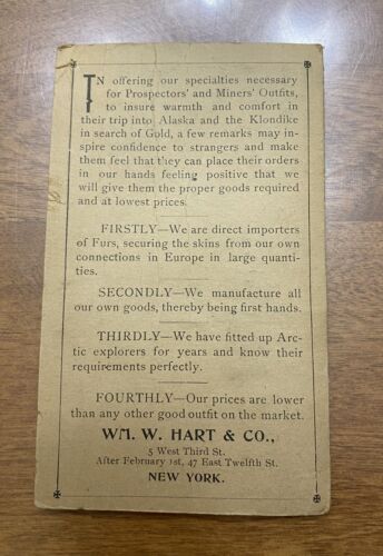 Pocket Map of Alaska and Klondike Gold Region, Gold Rush, Wm W Hart & Co 1897