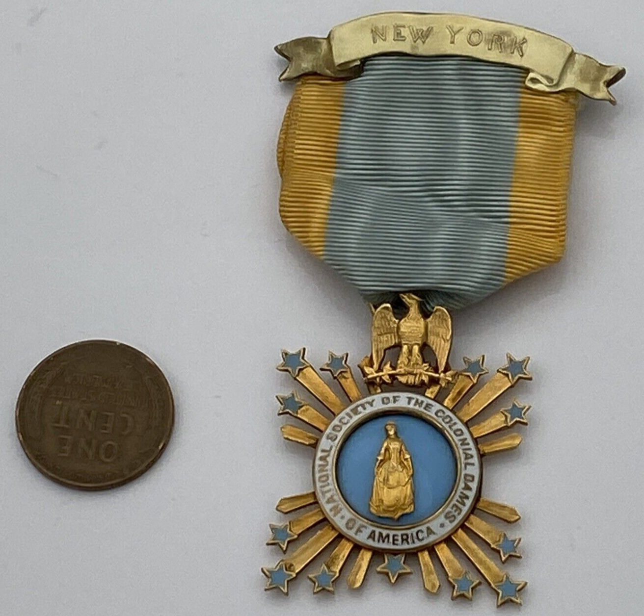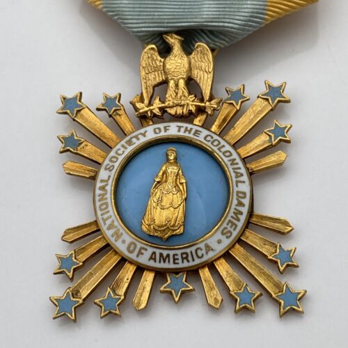 This rare 14K gold medal is a highly sought-after piece of historical memorabilia from the National Society of Colonial Dames, dating back to the year 1920. It is a named medal, adding to its collectible value. Made in the United States, this medal is a true gem for any collector of fraternal organizations or other similar items. The medal carries a rich history and is a true reflection of the National Society of Colonial Dames of America. It is a perfect addition to any collection and a great conversation starter. This piece is a must-have for any serious collector or enthusiast.