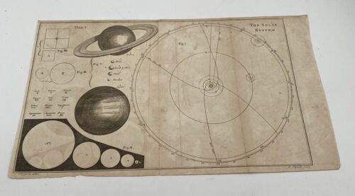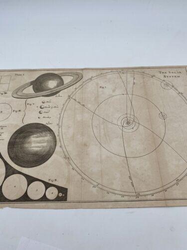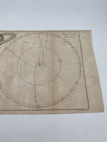 Rare antique print from the 1800s with astronomy described by James Ferguson based on Sir Isaac Newton’s ideas and simplified for those who have not studied mathemathics. J. Mynde, London, engraved this print.