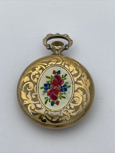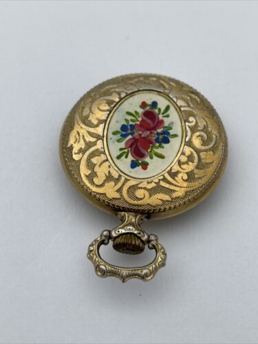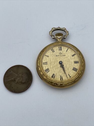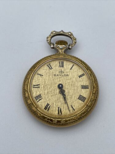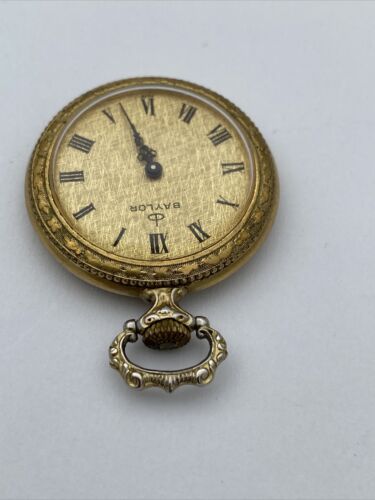 This rare vintage Baylor ladies pocket watch is a stunning piece with a beautiful rose design on the back. The watch is made from high-quality materials and has a yellow gold case color that adds to its vintage charm. The watch features a mechanical (manual) movement, and open face. The watch has a 12-hour dial with Roman numerals and dual indices, making it both casual and stylish. The watch comes from Switzerland and has no papers, service records, original box/packaging, or manual/booklet. It is a unique and valuable addition to any watch collection.