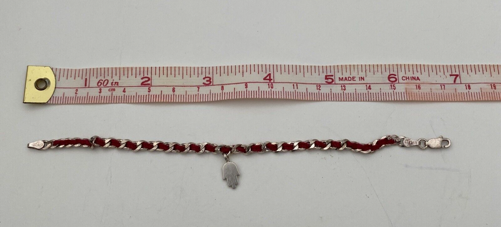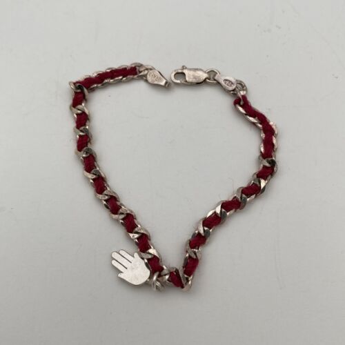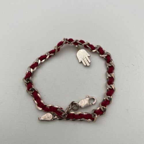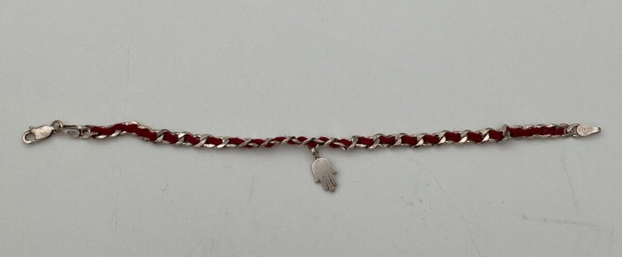Add a touch of vintage charm to your jewelry collection with this beautiful Red String Hamsa Evil Eye Bracelet. Made in Italy, this sterling silver bracelet features a hand-shaped design with a red string and evil eye charm. The bracelet is perfect for those who appreciate the unique and intricate details of handmade jewelry.