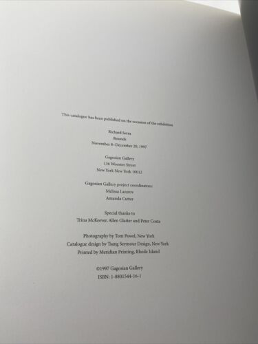 Richard Serra Rounds – Gagosian Gallery – New York Nov 8-Dec 20 1997