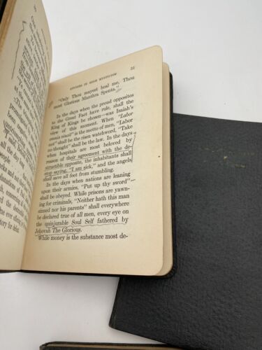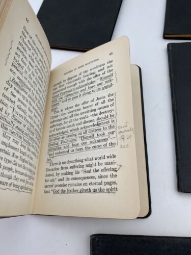 Some of the front flyleafs are missing. The books have underling and notes in the back in pencil. These were used in actual study. They have gilt on the edges.