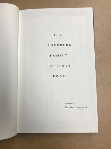 The Auerbeck Family Heritage Book 1985 Beatrice Bayley. Condition is Like New. Shipped with USPS Media Mail.