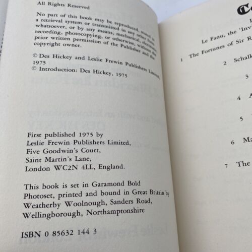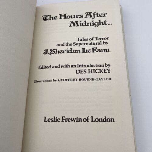 This vintage hardcover book titled “The Hours After Midnight” is a first edition printed in 1975. It is authored by Sheridan LeFanu and published by Leslie Frewin of London. The book is written in English and falls under the categories of Antiquarian and Collectible books, and Books and Magazines. The book is in great condition, with special attributes including a dust jacket and illustrations by Geoffrey Bourne-Taylor. The topic of the book is mystery and thriller, with a subject of literature and fiction. If you are a collector or a fan of vintage books, this first edition of “The Hours After Midnight” is a wonderful addition to your collection.