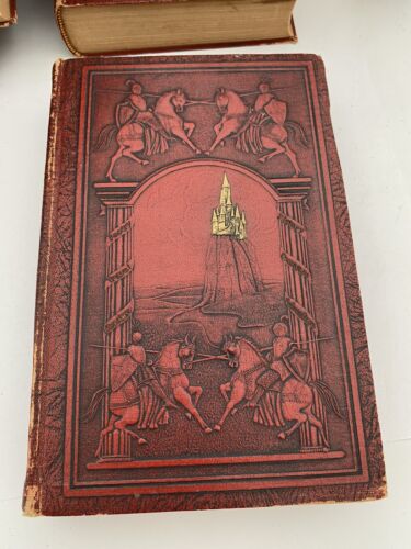 There is some shelf wear. All the boards and pages are intact. The spines are tight. These books have a cool medieval design on the cover board.
