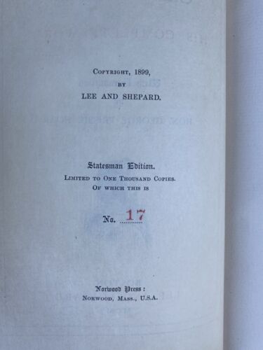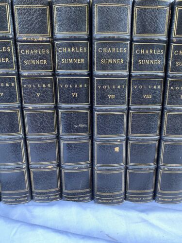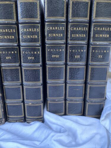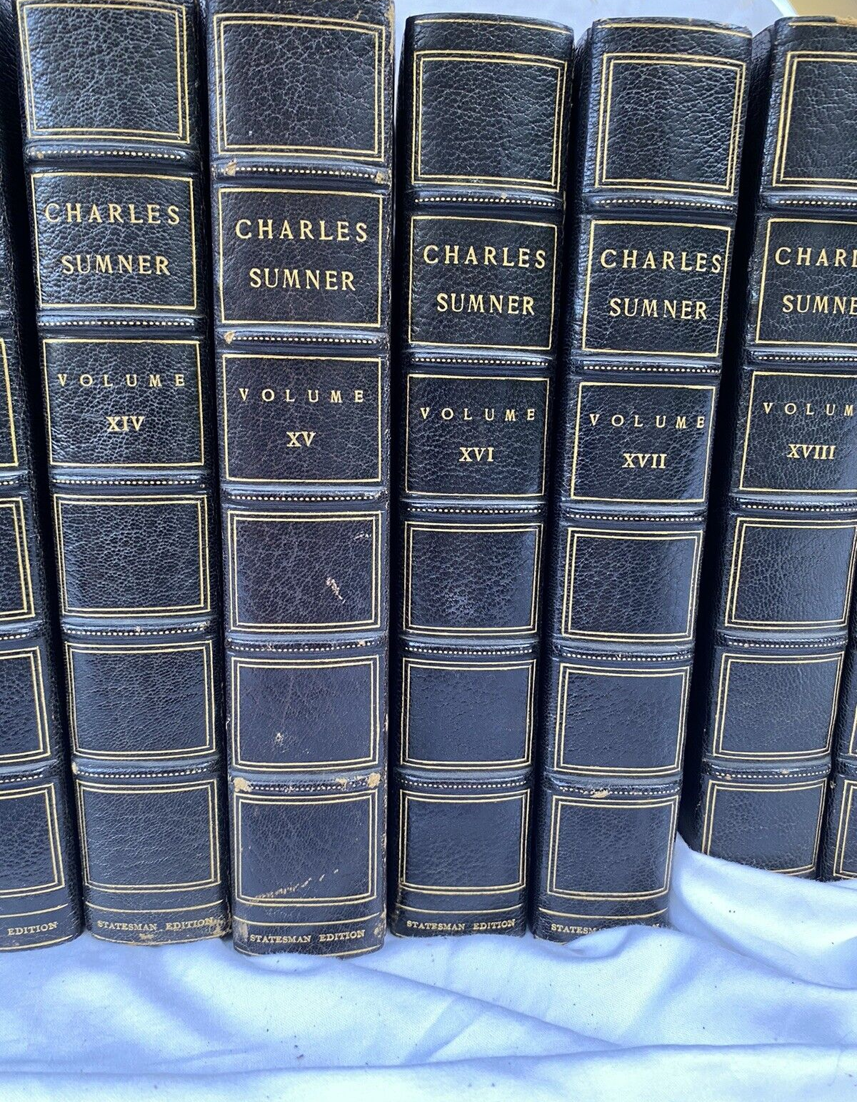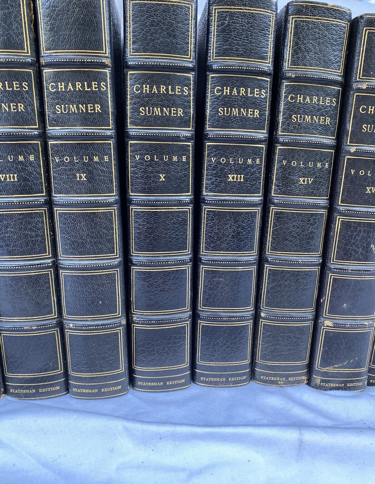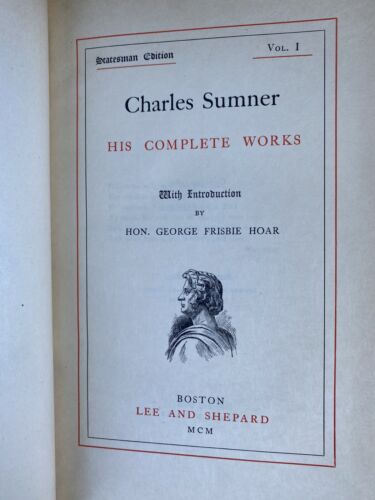 The Works Of Charles Sumner, Statesman Edition. It was published in 1899. There were 1000 editions made. This is no. 17. There are 18 volumes. Volumes 1 to 10, and 13 to 20. Does not include volumes 11 and 12.
