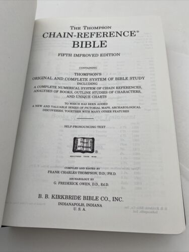 THOMPSON CHAIN-REFERENCE BIBLE KJV RED LETTER 1988 KIRKBRIDE, SOFT LEATHER COVER