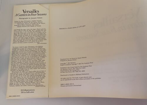 Versailles A Garden In Four Seasons by Jacques Dubois – Limited Edition /1250 copies Very Good (see photos)