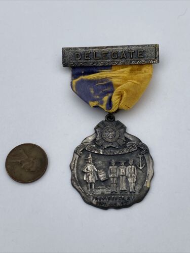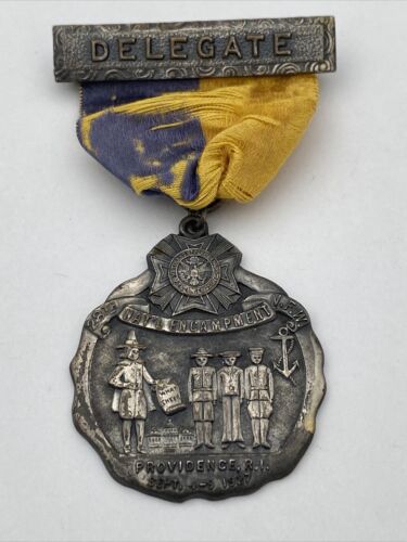 This medal is a piece of history from the 1927 VFW Providence, R.I. National Encampment. The recipient was a delegate of the event and the medal serves as a reminder of the comradery and service of veterans’ groups. The medal is a collectible item and would make a great addition to any collection focused on fraternal organizations or historical memorabilia.
