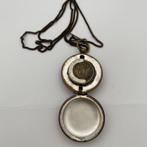 This vintage brass pendant is a unique addition to any jewelry collection. The coin case with a chain and token, making it a perfect gift for a coin collector or history enthusiast. The pendant is made from high-quality brass, ensuring durability and long-lasting wear. Its classic style and antique charm make it a timeless piece that can be worn for years to come.