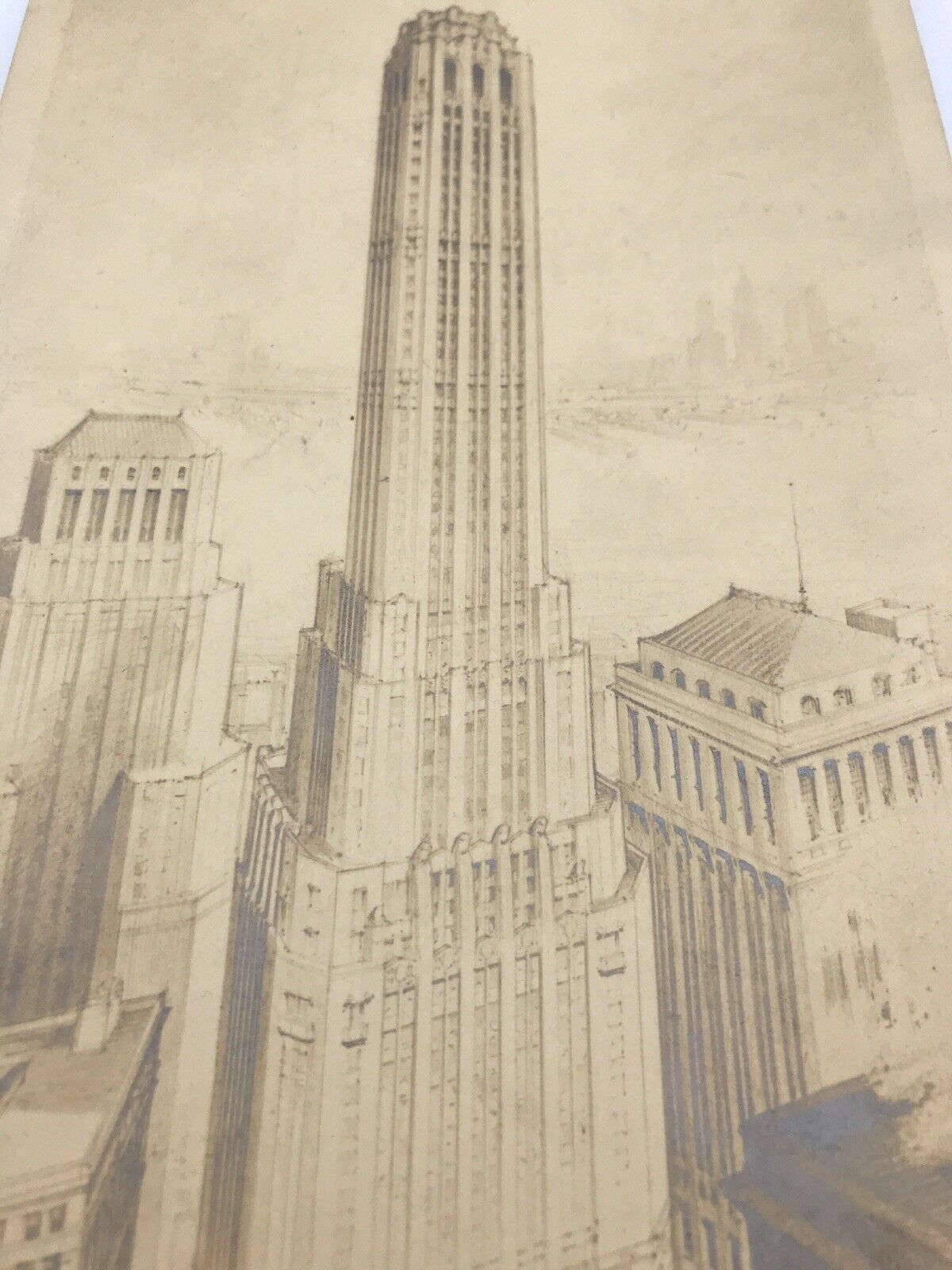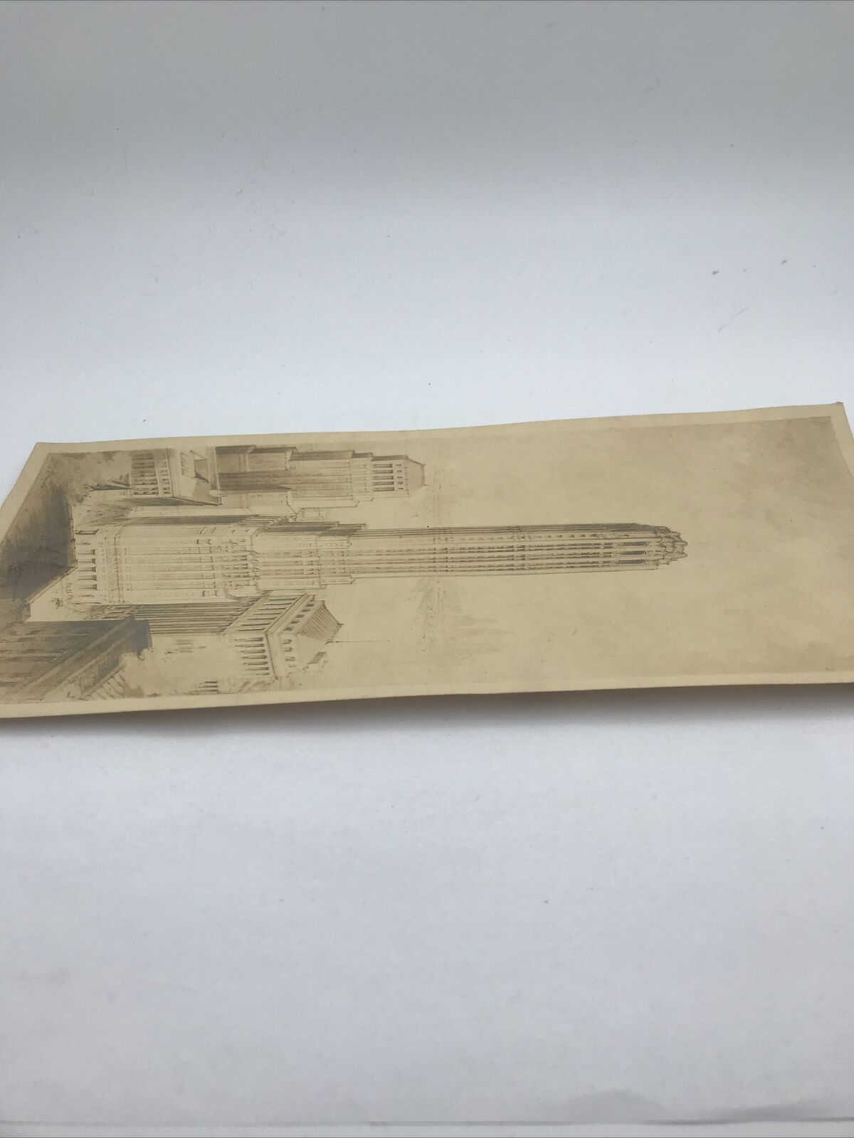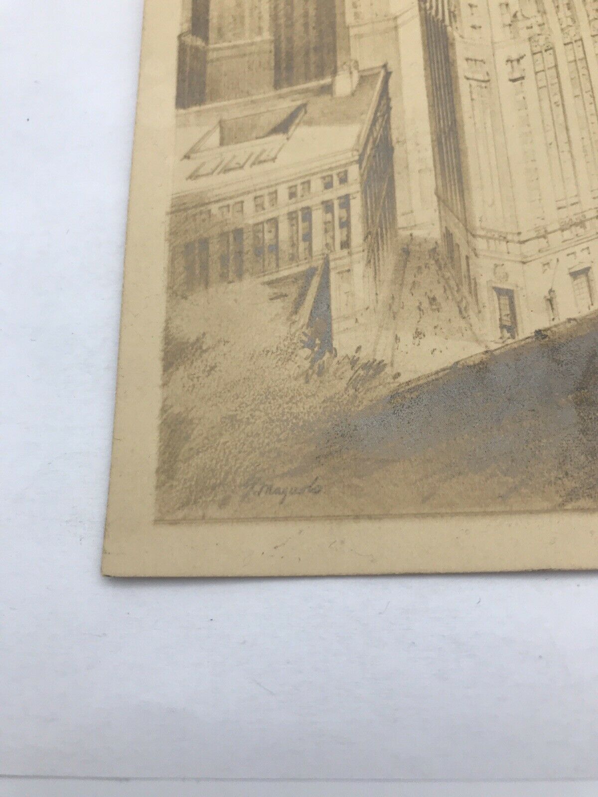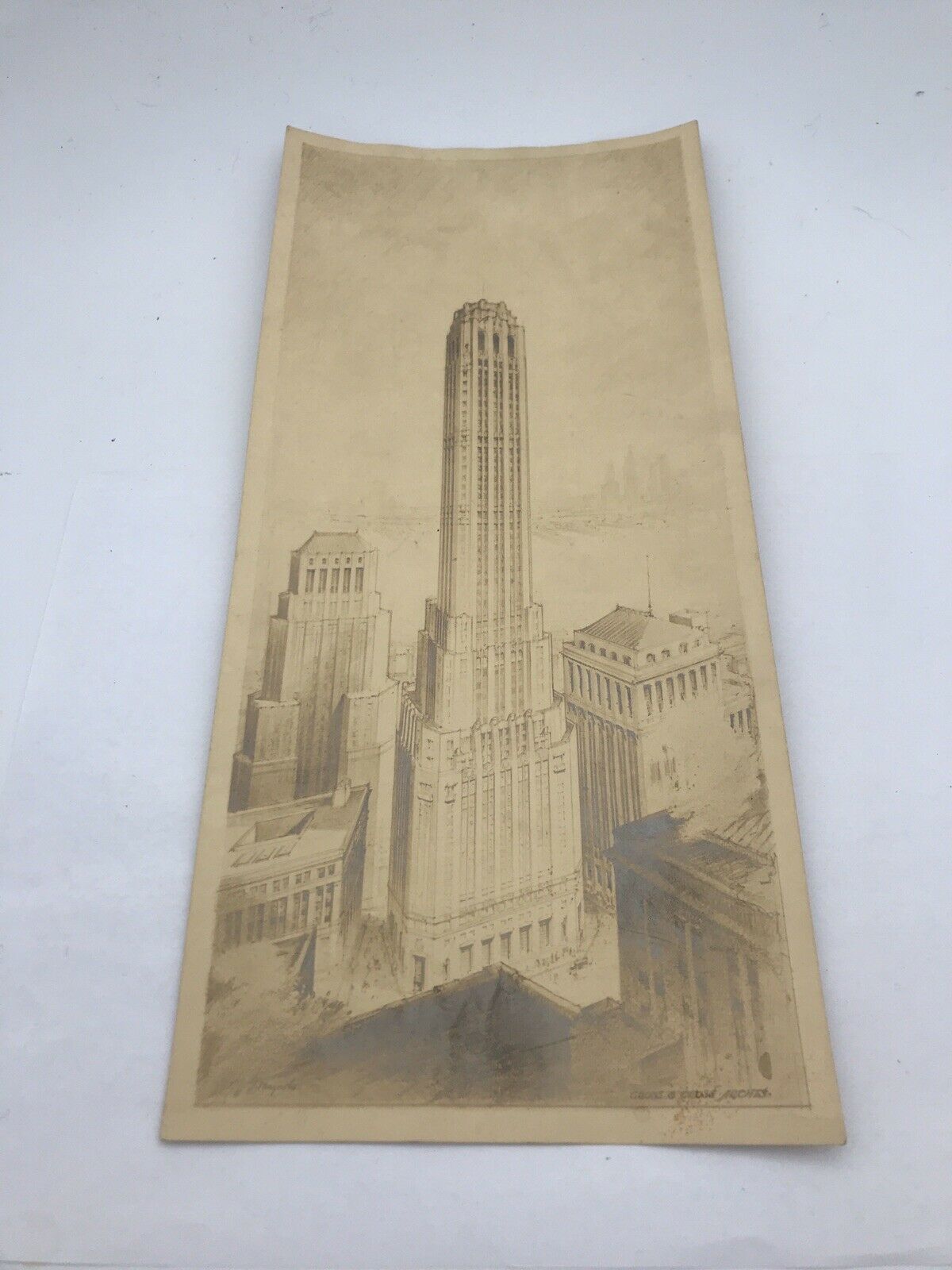 A vintage architectural drawing of 20 Exchange Place in NYC. The architectural firm is NYCs Cross & Cross (bottom right). George Maguolo is the chief designer and is noted on the bottom left of the drawing. This skyscraper was completed in 1931 and was known as the City Bank-Farmers Trust Building. We believe the drawing is from the late 1920s. It is approximately 13 by 6 inches.