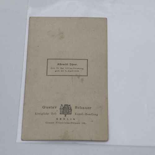 This vintage Carte de Visite (CDV) features a black and white photograph of Albrecht Dürer, a famous German painter, printmaker, and theorist. This is an original CDV.